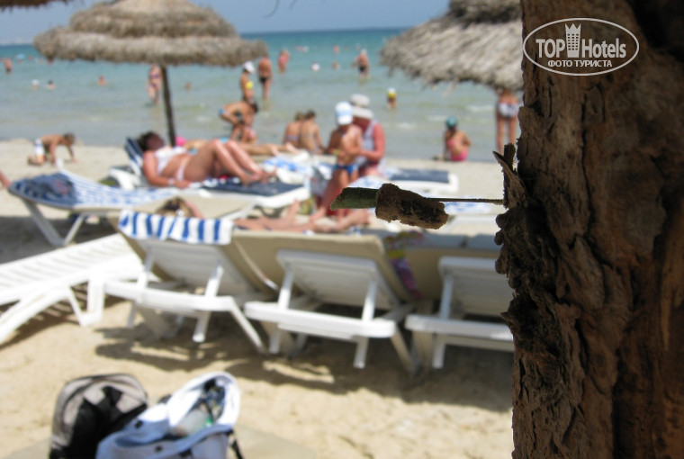 1 день. Путешествие началось с того, что по прилету в тунисию надо было заполнить анкеты, ввиду отсутствия ручки, вынуждены были отдать бравому сотруднику таможни в потной неформенной рубашке 5 долларов. На таможне 5 туристов не впускали в это подобие цивилизации, и целый автобус туристов, находясь в 200 метрах от отеля, ждал около 1 часа, когда они раскошелятся. При заселении на ресепшне долго объясняли, за что мы заплатили и за что, мы еще должны заплатить 150 долларов. Мы сделали вид, что не понимаем и получили ключи от номера 2326 с видом на море (это корпус, который торцом расположен ближе всего к морю, вид из окна хороший).