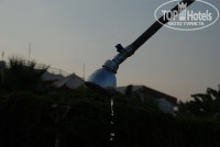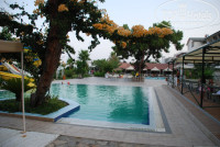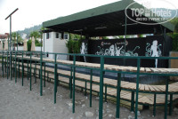 Перед зданием во внутреннем дворе два больших бассейна, 1 маленький круглый типа ванны для детей. У бассейна справа от здания столовая, вокруг бассейна шезлонги с навесом. У второго бассейна рядом крытый бар со столами и 2 водных горки (работают 2 часа в день).