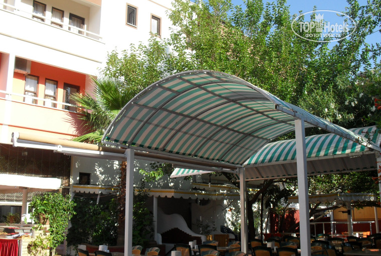 выбирали отель "по средствам" и расположению. Из всех трешек в "Арикане" не нужно было платить за лежаки и зонты. Конечно, этот отель (да и все трешки) не для сибаритов - им в другие отели и по другой цене. По порядку. Расположение замечательное - все рядом и море и зеленые зоны и красивые улицы, не говоря о магазинах и барах. Мы попросили балкон во двор - вид на горы и на ресторан с бассейном. Номера небольшие 15-18 метров. В номере фен, ТВ. телефон, кондиционер, весь санузел нормальной величины, но душевая кабина маленькая, в нашем номере, наверное, жил кто-то толстый и выломал дверку поэтому брызги летели на пол, а потом вода стекала через решетку в полу. Балкон узкий, но вполне можно было посидеть и полюбоваться на горы. Убирались ежедневно, полотенца меняли через день, постель через неделю. К стати, мои не шикарные "драгоценности" и небольшие деньги оставались в номере и покушения на них не было. В номерах, выходящих на улицу шум из соседних баров. При нас одну туристку пересилили (без доплаты). Персонал вполне корректный и все время чем-то заняты, чистят бассейн, моют (заодно охлаждают) пол, столы, стулья во дворе (там же ресторан) и т.д. Питание двух-разовое, не разнообразное, но свежее и сытное. Утром чай, кофе, вода иногда нектарин, оливки, сыр, брынза, масло, колбаса, сосиски в соусе, яйца, мед, два вида варенья, простокваша, салат и очень вкусный хлеб. Вечером два вторых - курица и мясо кусочками с грибами или с картошкой или с фасолью, суп. Рыбы при нас не было. Салаты из огурцов, помидор, перца с зеленью, на гарнир рис или фасоль, пирожные, при нас были арбузы и иногда апельсины, может что-то упустила. Не мытой посуды или прокисшей еды не наблюдалось. У нас плохо работал замок, пришли и исправили тут же, без всякой волокиты и "вымогательства". Общение с персоналом сводилось к "доброе утро, добрый вечер, спасибо, пожалуйста". Анимации нет, но дискотека до 23 часов работает - небольшая эстрада над баром, настил на столбах с музыкальной аппаратурой. Впечатление от отеля положительное. некоторые недостатки (однообразие питания, сломанные дверки душа) вполне окупаются прекрасным видом с балкона, красивым местом и возможностью полноценно выспаться ночью. Желающих громко веселиться возили на дискотеку в город (возможно платно, не интересовались). В отеле были только русские и турки семьями. Было вполне пристойно, достаточно тихо (не видели пьяных), хотя музыка играла постоянно и русская и турецкая. Во дворе небольшой, но глубокий бассейн и лежаки. Мы перед ужином плавали, есть в нем и "детский уголок". Резюме: если нет лишних денег, а к морю и красивой природе хочется, то в "Арикан" можно ехать. Не нужно только ожидать за небольшие (по сравнению с другими отелями) деньги какой-то роскоши, а все необходимое в нем присутствует