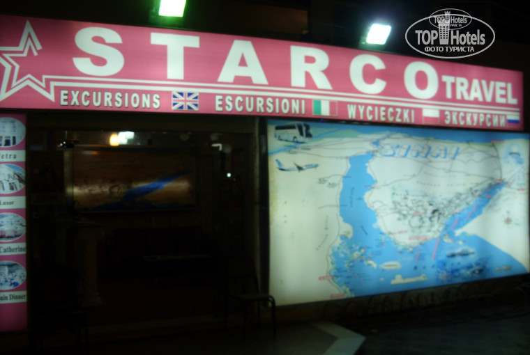 По поводу экскурсий: гиды отеля нас напугали (в связи с обстановкой в стране), чтобы с улицы не брали путёвки. Мы купили путёвки у них - в восточную баню (позарились на руковичку) - это было что-то: всё ничего - когда нас, как рыб в банку , набили битком в сауну, а затем в мойку, но когда нас также всех сколько вошло затолкали в джакузи - меня чуть не вырвало! Негативное впечатление оставило морское путешествие на остров Тиран - представьте себе при 50-градусной жаре с 10 утра до 16 вечера находиться. Сын поплавал, правда очень хорошо работал инструктор, но и все то! А мы с дочерью так и просидели на катере. Отлично съездили в аквопарк - рекомендую. День прошёл незаметно и очень весело. На исторические экскурсии мы не попали, так как они у гидов стоят очень дорого (290 долларов на одного), а когда мы уже все деньги потратили - узнали про туристическое агенство, через которое все (опытные) ездили. Оно находится слева от отеля Лайлина, если идти в гору. Хозяина зовут Сергей, он очень хорошо говорит по русски и плохого не посоветует (смотрите фото агенства). У него путёвка в Иерусалим стоит 80 долларов по сравнению с Пегасом - 295!