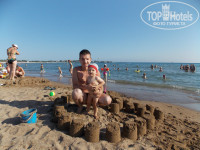 Пляж. Большой...пологий-это здорово для детишек! Песок...песок...песок. При входе в море - 2 шага мееелкие камни..да они как песок..все нормально...а за ними песооооок. В этом прелести пляжа кончаются. Мусора много-стаканчики, бычки, салфетки, бумажки.... Да это отдыхающие некоторые как свиньи..но работники отеля должны убирать..такова работа. Но не убирают. Гуляя по променаду..можно заглянуть на пляжные территории от других отелей-там чисто..а на некоторых территориях даже песок разравнивают каждый вечер. На нашем пляже такого нет...грязновато.