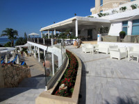 Напитками в баре не воспользовались (достаточно трат на обеде и ужине), но водой в упаковке, предлагающейся по 6 евро за упаковку – да. В соседнем магазине вода стоит столько же или минимум 3,4 евро за упаковку – для кого это существенная разница – носите из супермаркета, но в отеле это не приветствуется. Вечерами проходят развлекательные выступления – приглашенные артисты поют, танцуют, в наш заезд был иллюзионист. Просмотр обслуживается баром. Обратите внимание на 50% скидки в определенные часы. Удивлена названиями ресторанов и баров на сайте. Ресторан на завтраках называется Aquaria (в помещении и на веранде), обед проходит в Nautica под виноградной лозой, а ужин, за исключением суббот, когда у бассейнов проводятся свадьбы, в Celeste на веранде. Есть рестораны а-ля карт, но как выяснилось, там надо доплачивать, если заказали больше, чем стоимость вашего ужина на пансионе + напитки. И еще маленькая заметка для тех, кто бывал только в отелях с all inclusive. В отеле гостей на входе в ресторан встречает персонал, чтобы отметить в журнале ваш номер комнаты и сопроводить до столика. Если на обед или ужин заказаны напитки – вам принесут чек, в котором будет указан номер вашей комнаты, и, в котором вы распишитесь и напишите вашу фамилию, чтобы по окончании отдыха оплатить свои счета, которые будут занесены в компьютер (так же и в барах).