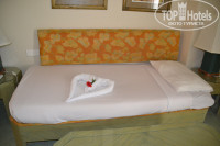 Номер очень понравился. Конечно, не обошлось без сюрпризов в первый день: вырубился свет, были перебои с водой, но эта неприятность была быстро устранена и с этого момента был сплошной позитив. Кондиционер работал нормально каждый день, в номере убирали регулярно, каждый день меняли полотенца, постель. Наш горничный Карим всегда интересовался все ли у нас в порядке и радовал нас разнообразными шедеврами из полотенец.