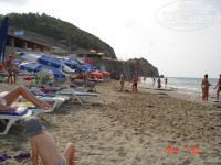 Каменная плита у входа в море похожа на застывшую лаву, в которой местами есть разные углубления, в которых остается от волн морская вода, есть даже место типа как ванна, в нее можно сесть и быть в воде. Вообще-то мне понравился даже такой пляж, можно на этой плите лежать и тебя омывает морской пеной от волн, а главное встаешь и нет ни в одном месте мелкой гальки и песка. Пару раз я даже без тапок заходила в море, но лучше это делать с правой стороны пляжа, и плита покрытая даже не водорослями а чем-то похожим на мох, мне не показалась скользкой. Но это возможно только если маленькими шажками и сразу где возможно начинать плыть. Выходить на берег в этом месте удобнее чем заходить в море, идешь как по лесенке, но сразу говорю надо быть очень осторожным и не торопиться, и только если море спокойное. Были мы и на диком пляже, до него идти можно и по берегу, и через верх. Да он классный, когда младший спал в отеле днем я и дочь ходили туда купаться.
