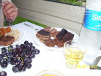 Ужин. Разное, много мясных блюд. Я люблю форель, она за две недели нашего проживания была подана только один раз, я была этому удивлена, в других отелях, которые мы посещали, ее подают практически каждый день. Хотя рыба иная, тунец например, конечно же, подавалась каждый день. Один раз был замечен плов с креветками. Кстати, я говорю только об основном ресторане, мы питались только в нем, хотя есть улица Сиде, где подается много различной еды, одного раза на той улице нам было достаточно (не буду вдаваться в подробности). Фруктов просто море, различные, моя любимая черешня была каждый день, если ее не было в основном ресторане, то она была на улице Сиде. Перечислю - апельсины, бананы, яблоки, груши, свежий инжир, абрикосы, крупные сливы, нектарины, вкуснейшие турецкие арбузы, дыни, виноград различный – зеленый, красный, черный, ну может еще чего забыла. Вечером, в основном ресторане пару раз было мороженое.