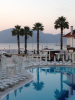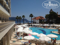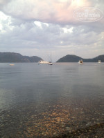 Отель новый, чистый, уютный, компактный, красивый. Расположен удачно - не в самом центре, но и не на окраине. Маршрутки до центра ходят ежеминутно. 5-7 минут и вы на центральной площади. Смотреть в городе особо нечего, но набережная неплохая, красивая, вечером оживленная. В субботу в 9 вечера попали на танцующий фонтан на центральной площади (рядом с магазином Вайкики). Потрясающе красивое зрелище! В Мармарисе в основном одни иностранцы, из рускоязычного населения - украинцы - их там очень много! Кто запланировал шопинг в Мармарисе - это не самое удачное место. Все цены для европейцев, да и брать особо нечего! Территория самого отеля маленькая. Анимации практически нет. Вечером в отеле скучно. Но! Вы же не в отеле приехали сидеть! Близость городских развлечений компенсирует недостатки с развлечениями в отеле. Зато море практически на территории, есть бассейн. Пляж (собственный) находится в 10 метрах от отеля. Заход в море немного неуютный, большие камни прямо у берега. Но через метр начинается песок. Так что специальная обувь не помешает. Мы заходили босиком, т.к. крупные камни в одном месте выбраны, а по небольшим идти хорошо.