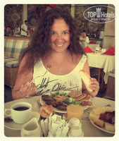 ПИТАНИЕ отличное, персонал замечательный, официанты душки, повара-солнышки, мы со всеми подружились, единственные МИНУСЫ - мне не очень пошли арабские салаты (много специй даже для меня, но всегда есть обычные салаты и свежие овощи) и на обед всегда какой-то один вариант супа, то есть выбора супов нет, каждый день суп какой-нибудь один(грибной,картофельный.овощной, но ОДИН, блин). А так - красота, обязательно на завтрак попробуйте штуку "belela" - она заливается молоком+сах.пудра+изюм+корица+кокосовая стружка. Скучаю по этой вкусняшке,даже не знаю что это за злак такой! Мне повар в первый день показал как делать, я потом каждое утро сама себе наводила:) Чаевые - толку нет, хотя я давала пару раз, думаю все же им приятно:)) Напитки приносят официанты, вовремя, только зайдешь - уже бегут с чайниками! Каждое утро повар жарит омлет с добавками на твой выбор, в обед оладушки жарят с шоколадом - объедение, на ужин всегда гриль что-то вкусное (печень,рыба,мясо,курица, всякое).Очереди никакой, все спокойно и красиво. Любовались многодетными арабскими семьями - такая красота,особенно маленькие ляльки! Есть ВТОРОЙ ресторан - типа итальянский, открытая терраса, мы его называли "вредный" - там подобие пиццы, фри и гамбургеры,из напитков кола и все такое. Там живут любопытные птички, которые выпрашивают еду!:) Рыбный ресторан был на реставрации, но нам хватало и двух ресторанов - не то слово!