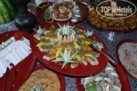Еда разнообразная - мясo по-разному приготовленное, много фруктов, различные салаты (любимый с морепродуктами), много видов хлеба и сладостей. Еда всегда вкусная и свежая, так как сам хозяин отеля питается в отеле и живет там.