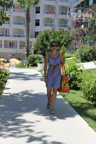 Отдыхали в июле всей семьёй, втроём, с пятилетней дочкой. Впечатления где-то на 4+. Номер нам попался в здании "Жасмин", я так поняла по другим туристам, что "Жасмин" лучше. Те, кого поселили в двухэтажные бунгало, жаловались на сырость или на 1 этаж, или на близость к шумной сцене. У нас был третий этаж в 7 этажном здании, 2 лифта, хорошая уборщица, которой пару раз я оставляла по доллару. За это она полотенца и простыни выкладывала в форме лебедей, очень красиво. Турки очень доброжелательны, уберут за тобой, даже слово не скажут. Бывало, мы так полотенца измараем или даже одно забывали на пляже, так на следующий день у нас в номере 6 новых полотенец, даже не ругались. Постель белая, хрустящая, каждый день её натягивают :). Что касается ресторана, то действительно есть небольшие очереди, но сами подумайте, у кого в обеденный перерыв на работе в столовой нет очередей? Это нормально, тем более, если за салатом перед тобой 2-3 человека, то ничего страшного, эти 2-3 человека очень быстро рассасываются. Здорово, что дополнительно есть рыбный и турецкий ресторан, туда можно пойти только 1 раз. Там сервис вообще на высшем уровне. Море близко, лежаков полно. А вот "элитные" лежаки с соломенной крышей надо правда занимать пораньше. Отличная анимация, особенно работа с детьми. Считаю, что в этот отель лучше всего ехать с ребёнком-школьником, там он раскрепостится, отдохнёт, позанимается в мини-клубе, выступит на сцене, получит за это диплом, поиграет в игры с другими детьми под организацией аниматора. А с детьми до 4 лет, наверное, будет скучно. Хотя питание и детские бассейны, думаю, подходят лет с трёх. И ещё, мамочки, берите с собой элементарные лекарства от насморка, кашля, поноса и температуры. Хоть первую помощь ребёнку окажете, если что. А то всё-таки другая страна. Не знай, какие там доктора. Хотя вроде там никто не болеет. В общем, даю положительную оценку отелю как очень приличному, с хорошим уровнем. И рекомендую для отдыха с детьми.