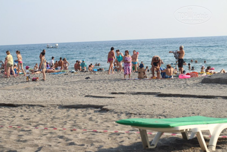 Море. Пляж прям через переход подземный. Это абсолютно не напрягало. Переход прямо от входа в отель на территории самого отеля. Само море чистое, но очень сильные волны всегда! Хороший галечный вход в море узкий - метров 30 всего, и там всегда полно народу и детей. Можно лежать на плитах, и там тебя очень приятно накрывает волнами. По краям входа сидели всегда пожилые люди, очень удобно сидеть на плитах и омываться волнами.