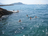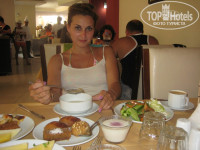 Питание!!! очереди всегда за мясом!!! Но нас это не напрягало, можно прийти чуть позже, мясо всегда оставалось, а народ уже поел и ушел. Из овощей обычный шурум-бурум - капуста, огурцы, свекла, салат фасоль и пр. Несколько видов сыров, которые есть невозможно, т.к. очень уж соленые. На завтрак всегда вареные яйца и рисовая несоленая каша) всегда дыня и арбуз, пару раз был виноград, но его быстро разбирали. Вода холодная всегда была в куллере. А также разбавленные соки типа юппи - киви, апельсин, персик, вишня, клубника. На пляже несколько раз било меня током от куллера этого, ноги мокрые, руки тоже...Персонал тока смеется и ничего не делает!!! Стала пить только воду, у нее рычажок пластмассовый!