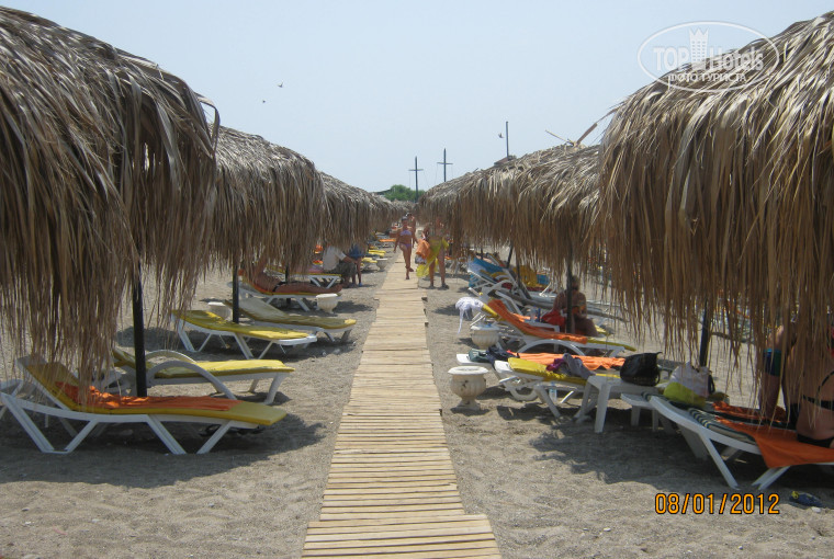 Здравствуйте!!! Прилетели мы только вчера и уже хочется обратно!!!! Отдых был просто потрясающий!!!! Прилетели мы 1 августа в 7 утра, разместили нас в 13,30, но мы не разочаровались, что надо ждать номер и сразу, чтобы не терять время отправились на море. Пляж мелкая галька, очень чистый, лежаков много, всегда можно найти себе место. После купания на море нам дали ключи от номера, но вместо обещанного Семейного номера - Family Room нам достался однокомнатный, муж очень расстроился, но увидев вид с балкона успокоился, вид был на море просто потрясающий!!!!! На второй день нам дали ключи от другого номера, но посмотрев его мы решили остаться в этом номере и ни чуть не пожалели!!!! Территория отеля действительно очень большая и красивая, есть где погулять!!!! Питание мне лично не очень понравилось, но это на мой вкус, ребенка я всегда находила чем покормить, с утра каша, какао, блинчики, в обед супы 2 вида, рис очень вкусный, рыба и много овощей, мороженое на обед и ужин, то есть голодными вы там точно не останетесь. И еще на улице всегда что-то готовили, пиццу, лепешки, гамбургеры, хот доги, и многое другое. Персонал всегда вежливый, улыбается, быстро выполняет свою работу. Анимация мне тоже очень понравилась, развлекают с утра и до вечера. Ездили на экскурсии на корабль Викинг, ребенку очень понравилось, даже я поучаствовала в пенной дискотеке, советую съездить, только денег берите с собой побольше, а то тур оператор сказал взять 2-3$, а в итого мороженое стоит 5$, футболка детская, кстати очень красивая 15$ и т.д. Муж еще ездил на рафтинг, ему очень понравилось, пожалел, что не взял нас с собой. Ходили на рынок, цены такие же как и в отеле. На покупала много полотенец в отеле, очень хорошего качества и не дорого, но торгуйтесь))) Очень красивые халаты и постельное белье, не жалейте денег, покупайте, могу сказать, что цены дешевле, чем в России. Отель советую!!!! Отдельное спасибо аниматорам, особенно Наталье, Николаю, и аниматору , ведущему дартс, от Наташки!!!!)))) Отель Супер!!!! Обязательно Приедем в следующем году!!!!! Отдельное спасибо нашим гидам, ездили от ПЕГАС!!!! Все очень понравилось!!!!!!