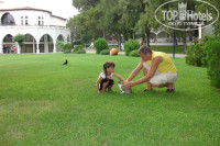 Территория красивая, ухоженная, постоянно уборка, стрижка газонов, кустов! Везде сосновые деревья! Горы с горными козами (любоваться имим вблизи одно удовольствие), там ж ежикки - почти ручные. Возле ресторана "КЕт Хауз" "Домик для котов" - это развлечение всех детишек. Там же утка и индоутка! В др. части прям мжду лежаками (за горками) спокйно прыгают кролики!