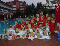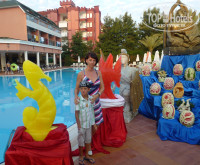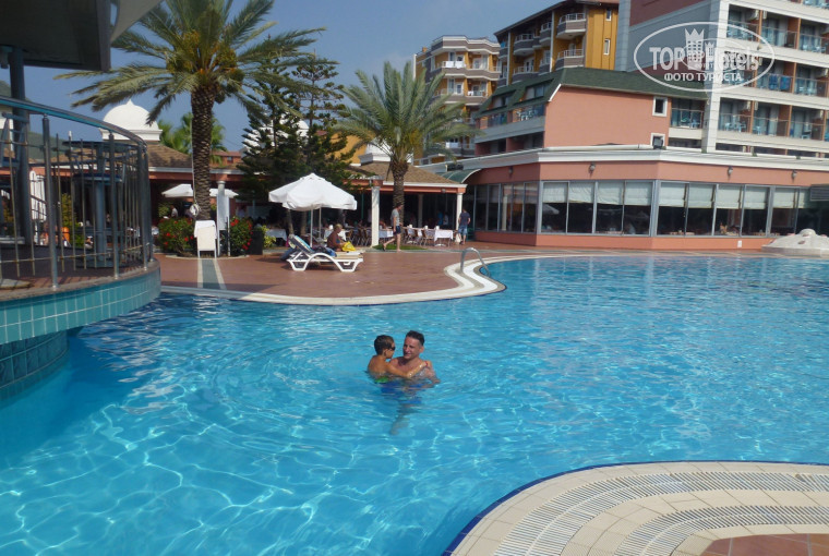 Были в отеле с мужем и сыном 6 лет. Туропратор Санрайз без нареканий, очень понравилось и отношение, и экскурсии .Разместили быстро, но номер дали на шестом этаже под крышей и видом на дорогу. Мы взяли на ресепшен вторую карточку и пока нас не было кондиционер работал, поэтому за день комната не нагревалась. Убирали номер и меняли полотенца каждый день, а вот бельё не меняли, пока я не содрала простыни. Другой семье не меняли бельё две недели, так что не ждите, чаевые тоже не помогут, смело бросайте всё на пол. Персонал дружелюбный, все стараются, официанты очень хорошо работают, с детьми постоянно шутят и выполняют их капризы. Плохого отношения к русским я не заметила, может из-за того, что нас было мало. Еда разнообразная и вкусная, были тематические ужины,поджигали фламбе и жарили огромного тунца. На пляже разносили арбуз, как раз, когда было лень идти даже до бара. Анимация хорошая. Когда были наши девчёнки Люба и Яна вообще было отлично, но потом они уехали, стало хуже. Но нам, русским ,анимация не нужна, мы сами себе анимация. На дискотеку немцев не загонишь, только русские и танцевали, компания у нас была маленькая, но весёлая!!! Самое главное, что никто не напивался и не устраивал скандалов, что не скажешь, например о голландцах. Существенный минус отеля - это заход в море, вернее даже выход, когда надо по камням забираться на пригорок и море частенько было грязное. Так же надо было очень рано занимать лежаки у бассейна, в 7 утра свободных уже не было. В целом отель очень хороший. Мы поехали спонтанно и ни разу не пожалели об этом, отдых удался на славу!