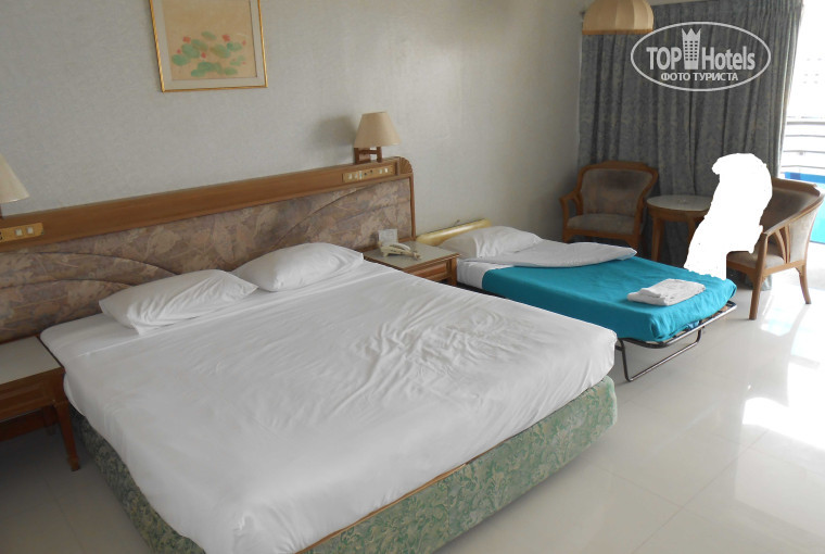 Здравствуйте! Все оценки низкие я поставил потому что, первый раз у нашей семьи был такой плохой отдых, первый раз мы хотели уехать поскорей домой, а не продлять отпуск! Мы уже были в Тайланде(почитайте другие мои отзывы), и нам есть с чем сравнить. Начну попорядку: привезли нас в отель в 07-30, забрали наши вещи, предложили заполнить карточки заселения, и предложили посидеть-подождать на рецепшене. Ждали мы "НЕ ДОЛГО" до 14-00, это после самолета,не выспавшись и в теплых вещах на 35 градусной жаре, т.к. на рецепшене нет кондиционеров и он не продувается ветерком. Завтрак нам и не думали предложить, потому мы с женой и ребенком пошли искать кафе. Итак в 13-45 нас позвали к стойке рецепшена и дали карточку ключ (размещали нас в здании 2 который с башней), мы поднялись на 10 этаж, и о чудо, дверь то не открывается. Носильщик принесший чемоданчик, кудато бегал и через минут 10,дверь открылась(со страшным скрипом). Номер оказался страшней палаты в больнице! В туалете моргал свет, из двух ламп возле зеркала горела одна. Над столиком в коридоре висели четыре ржавых вешалки,вместо одной двухспалки стояли две кровати через тумбочки и возле окна два плетеных стула и столик. С балкона вид был на какоето поле, внизу разпологалась свалка. Нам сразу сказали что можно посмотреть другой номер, и мы пошли смотреть. На 21 этаже совсем на другую сторону,номер оказался светлей, с видом на аквапарк и на море. Кровать двушка +кровать для ребенка уже 6 плечиков и ванная побольше. Над кроватью картина,намалеванная каким то тайским ребенком. Носильщик сказал что этот номер не стандартный и за 8 дней надо доплатить 3500 батт. После некоторых торгов отдали 100 долларов, тот не выдав никаких квитанций, ушел довольный. Распихав вещи мы побежали к морю. И сдесь нас ждал второй сюрприз: от здания с башней нужно пройти в округ атракционов, бассейна и аквапарка и по самой пляжной до места где все купаются,метров 450. Я забыл сказать что ЛИФТЫ находятся на 3 этаже и до них ножками по лесенке. Точно не поправитесь, я так похудел, был 114 стал 111. Уехать от отеля только на такси(микроавтобусики прямо на выходе с эстакады), либо пройти с киллометр вверх по улице(где две машины коекак разъезжаются и готовы тебя сбить если не прыгнешь) до перекрестка(справа Фэмели) и уехать на тук-туке за10 батт в центр или до кольца дельфинов. Территория у отеля большая но это в основном стоянки для автобусов, мотобайков, такси, и авто персонала.Есть маленький сквер с растениями животных(слон, жираф, олень, заяц или хрен его знает), и атракционы. В аквапарк вход платный(ни чего хорошего,Отобьете попу на горках, не понравится). ОБСЛУЖИВАНИЕ НОМЕРОВ на 2+, я впервый день на край простыни капнул кетчуп, эта простынь была все время,её ни кто не менял просто заправляли по разному. Путевка у нас на ТРОИХ но нам 4 дня упорно ставили две воды ,две шампуни и мыла, два полотенца больших и два маленьких, пока я не пришел на рецепшен и не показал ваучер на троих, и на фотике, что все для двоих. Они мне "ОКЕЙ,ОКЕЙ!" и стали ставить на троих и полотенца добавили.( Гид не помог,большой привет "БИБЛИО") Горничные убирают плохо, только мусор выкидывают(мы сами выносили к лифтам чтоб мурашек не разводить),полы не подметают,я это заметил по семечкам(от бывших жильцов) под столом пролежавших все время. Добавлю что супруга у меня обессвеченная и дочка белокурая, 