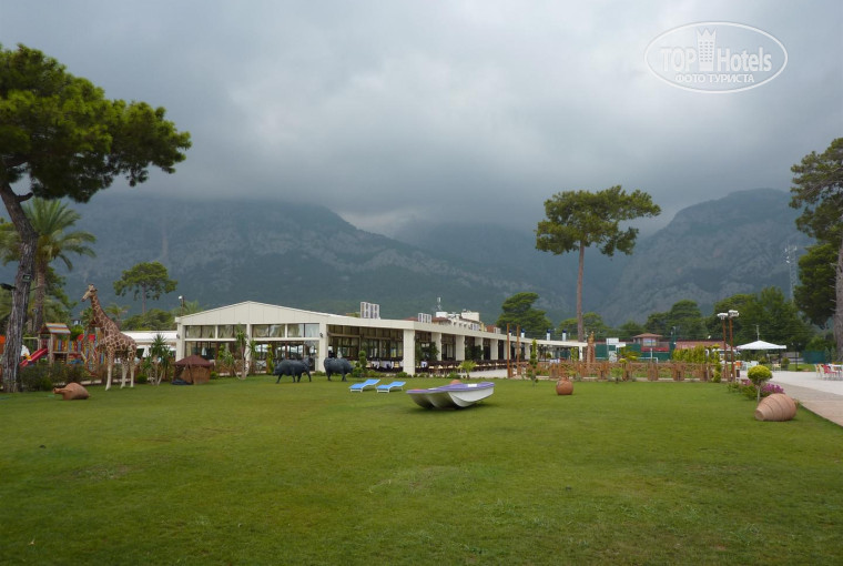 территория отеля хоть и небольшая, но чистая и приятная, не нужно далеко ходить до бара или ресторана! весь персонал отеля достаточно хорошо говорит по-русски, так что проблем с объяснением что Вам именно нужно не возникнет!