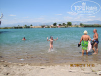Море хорошее, но бывает мусор у берега. Справа от пирса плита есть, но до нее не доходишь. Злобные рыбки кусаются, особенно в мозоли. Народу в море ооочень много. Но есть пирс. Лежаки тоже можно найти, если не занять утром, но вряд ли под навесом. После обеда лежаков полно и у моря и у бассейна. А вот душ раздражал. При выходе из моря всего два несчастных душа и один еле работает. К душам обычно очередь. До хорошего душа далеко, надо пройти весь пляж. Для пятерки как-то странно. Лежаки многие сломаны, матрасы потрепаны. Утром еще мокрые. Но опять-таки ерунда.