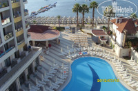 Пляж. Как и во всем Мармарисе, не очень широкий, но это особенность самого Мармариса. Места на пляже и возле бассейна хватало всем, никто не занимал места с раннего утра, все приходили и всем хватало места хоть на солнце хоть в тени. Администрация отеля очень следит за тем, что бы все нашли удобный для себя лежачек. Могу сказать то, что отель новый и на территории отеля не так много зелени, но это абсолютно не является минусом отеля, мне и многим другим отдыхающим это очень даже нравилось.