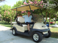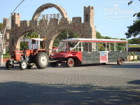 Территориально отель расположен в нескольких километрах от поселка Белек. Если выйти за ворота отеля, то вы не увидите ничего кроме длинной дороги, с одной стороны которой расположена огромная территория гольф-клуба, а с другой соседние отели. Нет ни одного магазинчика или ларька. Все это только в Белеке. Можно прогуляться пешком, займет минут 30-40. Можно воспользоваться такси от отеля до центра Белека 7$. Также каждые полчаса по дороге ездит трактор с тележкой. Этот «Эх, прокачу» стоит 1$ с человека. Трактор объезжает по маршруту отели и направляется в поселок. Туристический центр Белека небольшой, минут пять-десять ходьбы без остановок. Там все, как обычно: магазинчики, сувениры, кафешки и т.д. Далее идут жилые дома и ничего интересного. На такси можно проехать в Кадрию (7-8 км), там все раза в два дешевле. В Белеке есть пара-тройка достопримечательностей. Символ Белека – морская черепаха.