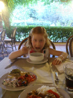 Ресторан очень большой, в здании кондиционеры, там попрохладней, на улице вентиляторы работают. Еды много, на любой вкус! Мясо в любом виде, на улице шашлык, рыба, картофель тоже в любом виде, фри, пюре, жареная, тушеная, много овощей, салатов, супы и т.д.
