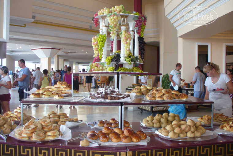 3. Питание. Это был просто пир живота! Огромное спасибо поварам и обслуживающему персоналу! Очень беспокоилась, что младший сын ничего не будет есть. Напрасно, всё для отдыхающих: и диетическая пища, и детская еда, а также овощи, фрукты, каждодневно мясо (разное и различно приготовленное на любой вкус). Ох, вспоминаю и слюнки текут... Особенно там здорово сладкоежкам: такой стол со сладостями, что до сих пор фотки рассматриваю и вздыхаю...