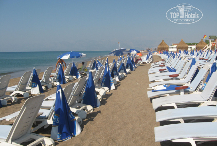 На собственный пляж отеля ездят от силы человек 20, остальные предпочитают ходить на городской пляж, который недалеко - минут 10 пешком. Чтобы ездить на этот пляж, приходилось подстраиваться под время автобуса, что не совсем удобно, и на этом пляже "Дидо" турки указывали, какие лежаки занимать (как в пионерском лагере) и ходили, смотрели, кто что ест и пьет - со своим нельзя, а в их баре цены высокие. Мы пару раз съездили на такой пляж, и стали ходить на городской - там никто не указывает, где расположиться. Лежаки на городском пляже бесплатные, зонтики свои. Также есть душ, кабинки для переодевания и туалет. Пляж - мелкая галька с песком. Если лежаки все заняты, то потом они освобождаются, люди уходят, и можно занимать.