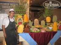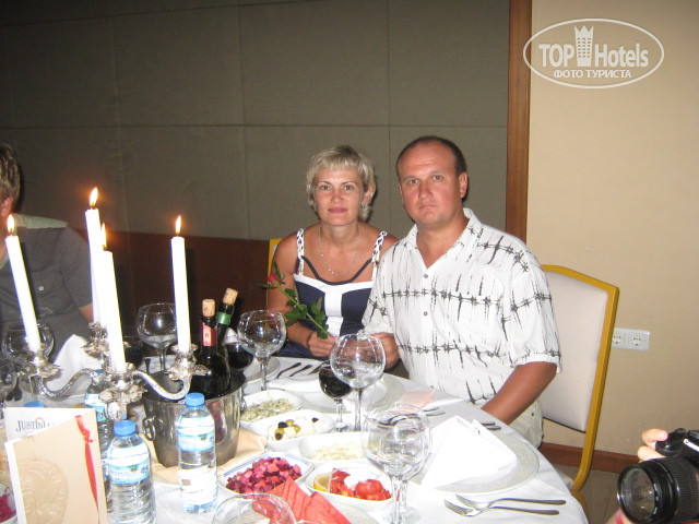 Отель выбирали долго, но думаю, что не зря. Территория большая 90000 кв. м., очень ухоженная. Много цветов, даже здания обросли красивыми цветами. Проблем с заселением на было, приехали в отель в 17.00ч. Номер у нас семейный достался с видом на море, это обрадовало, но внизу была парковка. Хотели переехать , но передумали. Были небольшие неисправности в номере, но их устраняли по первому требованию. Питание соответствует заявленному уровню. Блюда разнообразные, всегда можно что-то найти. Фруктов много, спиртное местное неплохое, главное, что персонал его не разбавляет. Были в трёх ресторанах а-ля карте, не плохо. Ужин с директором конечно -супер! И обстановка и стол и развлечения всё на высшем уровне. Директор к каждому подошёл и лично поприветствовал.