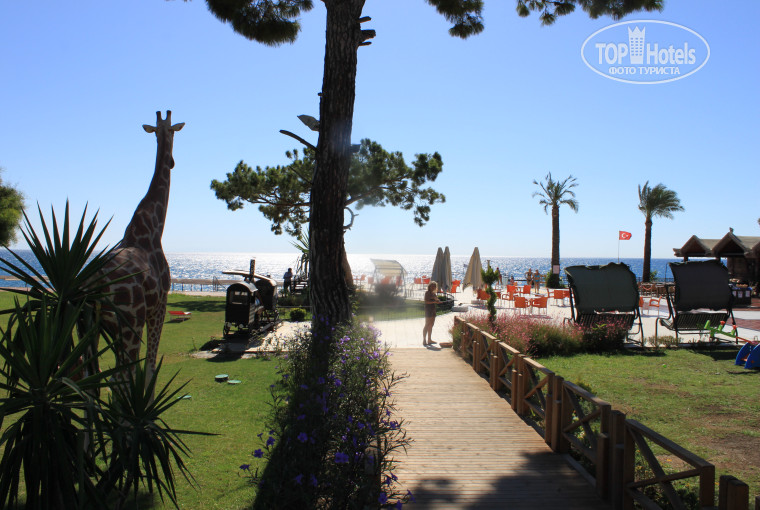 Palmariva Club Belpinar очень симпатичный отель.Территория не большая, но и не маленькая, зато ухоженная, чистая, много экзотических деревьев (инжир, апельсин, гранат, финиковая пальма),а также цветов, присутствует красивый ландшафтный декор. Понравилось также и то, что территория отеля поделена на две части: первая-это корпуса с номерами, очень спокойно и тихо,во дворе бассейн , вторая- это часть отеля с рестораном (основное питание),двумя бассейнами, водными горками, баром, амфитеатром, столиками с зонтами от солнца, рестораном "А ля Карте"и выходом на пляж, где и происходит вся активная часть отдыха туристов. Тоесть, если хочеться спокойно отдохнуть в номере, будь то дневной сон или ночной, всегда тихо, нету не громкой музыки, не запахов готовящейся пищи из ресторана.