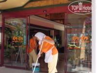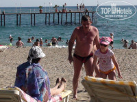 Отель преимущественно для русских. И для семей. Первое и общее впечатление - грязновато... Номер дали сначала в подвале, после скандала и $10, второй этаж с видом на море и свалку на пустыре. Уборка посредственная. Из номеров грязную посуду выставляли на парапет лестницы, где скапливались горки тарелок. Думаю туристы сами виноваты нарушая запрет таскать посуду в номера, а турки так выражали протест. Питания хватало, но надоело однообразие. Для четвёрки - плохо. О персонале ничего плохого сказать не могу: например даёшь бакс в столовой(рестораном этот общепит назвать язык не поворачивается) и рядом всегда стоит официант и следит за напитками и чистотой стола. Девушка Катя, ответственная за детскую анимацию, тоже старалась. Мы детей не отдавали ей днём, т.к. на море приехали, изредка они сами ходили, но вечером на сцене всегда участвовали в детском шоу с танцами. Территория большая, состоящая из спально-административной зоны с корпусами на холме и развлекательной территории за дорогой у моря. Видел, как в верхние корпуса родители, с маленькими детьми на руках, поднимались с трудом. Всё в зелени, но не ухожено. В Турции всё растёт и благоухает, только поливай. Но для отеля с 4* только этого мало. Пляж обширный, лежаков и зонтиков всем хватало в любое время, мы заранее не занимали. Но песок грязный. У самого прибоя, полоса, завезенной гальки. Море было чистое, прозрачное и тёплое. Наискосок в море гранитные плиты, местами с разломами и острые. Но малышам до них не добраться, а взрослым, если нет волны и голова на плечах, вполне безопасно можно сверху переплыть. Я ходил по плитам, плавал в трещинах(овражиках) без травм. Есть пирс, с которого можно спуститься в море совершенно безопасно. Есть детская игровая площадка - уже старенькая и замусоренная. Есть теннисный корт, - я никого там не видел. В бассейны я не ходил, с водных горок не катался, но наши ребятишки в первые дни всегда в отведенное время там были. Особенно поразил "ресторан" Аля Карте, когда однажды прогуливаясь я наткнулся в дальнем углу территории на несколько грязных столиков и небольшой барчик, стоящих практически на песке...сразу даже не понял, что это именно и есть Аля Карте... Экскурсии рекомендую на корабле "Викинг" и на джипах в Грин Каньон. В Аланью съездили просто на автобусе, там же по совету польки из турагенства на такси за $6 на троих, поднялись в крепость и пешком сами там полазили и походили, чему очень остались довольны. Походил пешком по местности за отелем: в общем Инджекум большая стройка и много свалок на пустырях, поэтому пыльно и грязно. Выводы делайте сами. Всего не описать.