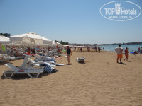 Пляж песчанный, к сожалению, не очень чистый. Туристы конечно виноваты, неужели два шага до урны трудно сделать?! Окурки...Также валяется одноразовая посуда. Но в этом виноват отель! Ни одной нормальной мусорки на пляже я не увидела. Люди бросают стаканы, тарелки в чаши для окурков, а они очень мелкие и ветер раздувает всё по всему пляжу. Считаю это огромным минусом! Пляж должен быть чистым! Море чудесное, для детишек - рай! Очень удобный заход. Валуны в море не напрягали, их легко заметить, море чистое, к вечеру только, когда волны были посильнее, было мутновато у берега.