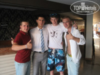 В целом отель отличный на свои 4 зведы, наш номер располагался в самом старом блоке да ещё и под крышей - в скворечнике мы жили))) но молодым горячим уральским парням это ведь особо и не важно))) был балкон с которого простирался вид на весь отель и турецкие горы, душ нормальный туалет нормальный))) в других номерах которые нам довелось увидеть в более новых блоках висела плазма новый кондиционер красивое оформление, в отеле есть как крытое так и двух ярусное уличное кафе в котором всю еду нам готовил отличный повар и человек - Отилла - советую попробывать всё кроме сосисок колбас и котлет так как они соевые))) но это во всех отелях так))) отель находится не далеко от улицы с магазинами где можно приобрести сувениры и одежду (советую дойти до её конца - ближе к морю и приобрести мороженого) в отеле работает отличный персонал Бармен - Мансун (макс) - самый весёлый бармен мы даже три раза ему на чай давали, Осман делает лучшие кальяны (сервис), Мехмет(Рома) на ресепшене был всегда вежлив подсказывал как куда дойти ни разу не заблудился))) в номере убирались хорошо, до моря кидти минут 15 но ходил бесплатный автобус от отеля до моря даки пешком есть на что посмотреть по дороге))) 2 бассейна развлекательная программа как для детей так и для взрослых весело))) для детей правда одно и тоже каждый день но им весело))) конкурсы общий танец отеля (ну для тех кто хочет конечно) для молодежи каждый вечер организуют поход в клуб и обычно место в вип зоне)))