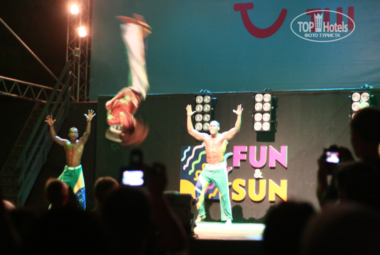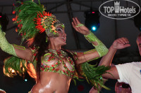 Вечером было весело всем! Я так ни разу не дошла до дискотеки, но после потрясающих шоу и вечерних конкурсов и танцев на пляже - мне уже было не до неё-:) Единственное, дорогие родители! в 9 вечера шоу для взрослых! Больно было видеть пьяных мужиков, изображающих стриптиз и дети сидели в зале и смотрели на это всё! (Это бы конкурс мистер Джакаранда). Шоу по вечерам потрясали! До сих пор не могу забыть артистов "Китбаланс" (на англ. языке название). Такое было ощущение, что мадонна приехала ко мне домой и поёт для меня-:) У них просто высочайший уровень!! Зажгли ребята Бразильской самбы! Сначала они у бассейна урок дали а потом вечером выступали в роскошных костюмах! После шоу на пляже была живая музыка и все пошли туда танцевать.... Было круто! -:))) Вообще все так душевно...весь отель как одна семья-:) а он не маленький... и постоянно чувствуешь, что здесь всё сделано для того, чтобы тебе было хорошо! Отдых получился на 100 баллов! И это без единой экскурсии, без дискотеки, без алкоголя и с маленькой дочкой-:) Муж тоже не скучал: в воллейбол, дарц, бочу играл, на раффтинг съездил... Кстати, мы заранее зарегистрировались здесь и по приеду нам принесли в номер фрукты (обещанное шампанское не донесли-:) но нам и не нужно оно было) и приглашение в турецкий ресторан (кстати, только туда пускают с детьми)...Отдельно про ресторан хочу сказать: услышав, что из их мясного ассортимента мы ничего не будем...наготовили нам всего-всего! -:) чего нет в меню! -:) Я даже ходила поваров благодарить-:))) В общем, огромное спасибо всем-всем за всё-всё-всё!!! -:)))) Мы очень счастливы, что были именно в Джакаранде.