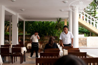 Мы приехали в отель почти в полночь, меня с плачущими от усталости и жары детьми быстро заселили безо всяких чаевых в чистый приятный номер. После долгой дороги (поезд, самолёт и автобус) мы были счастливы, увидев белоснежные постели на весьма просторных кроватях (двуспальная и полуторная). Меня приятно удивила чистая красивая сантехника. Несказанно обрадовал кондиционер, который располагался удобно - в стороне от кроватей, не дул на спящих детей, но охлаждал воздух в комнате. Несмотря на полночь, нас с детьми пустили в ресторан, хотя ужин по расписанию с 7 до 9, и вызвали бармена, который вынес нам две тарелки еды. Всё с улыбками, безо всяких уговоров и чаевых. Я со своим нулевым опытом просто неспособна была после долгой дороги на уговоры или чаевые.