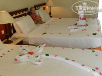 Всем привет! Отдыхали с женой и 4-х летним ребёнком, летели через Tui. В Егтпте второй раз. Отель 99 % славяне из них 90 % русские. Приехали в 8 утра, поселили втечении 20 минут, отвезли нас и сумки в номер на електромобильчике, завели в номер, спросили: всё ли нравиться? Если нет поселим в другой, совершенно бесплатно. На завтрак правда не пустили, но после перелёта не очень то и хотелось. Номера не очень скажем новые, как впрочем и в 90 % гостиниц Египта. В номере всё работает, по ТВ несколько русских каналов, жили на первом этаже, чего всем советую. Територия не маленькая, очень зелёная, множество различных подсветок, никаких комаров, муравьёв не видели, мухи правда иногда попадались. Питание великолепное: много мяса различного в разных видах приготовления, немеряно рыбы, кальмаров, офощей, один раз даже был борщ украинский, очень вкусный, по вечерам гриль меню великолепное, а сладостей просто десятки видов всяких пирожных, тортиков, пончиков, круасанов и т.д. Есть детское меню, на всшем уровне. Обслуживание в начеле было очень хорошим, а в конце немного официанты разленились приходилось брать инициативу в свои руки, но это на общем фоне незначительный недостаток, вобщем персонал приветлив и внимателен.