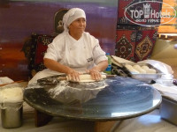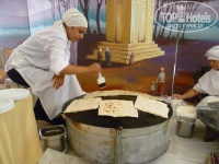 Мы ходили в Главный ресторан "Гармонию" на завтрак к 9.00, на обед и ужин к открытию ( к 12.30 и 19.00 соответственно). Еды было много и разнообразной: рыба (мммм!!!), говядина, курица, индейка (мммм!!!), ягненок (мммм!!!), печенка (мммм!!!), котлетки, фрикадельки: на шампурах, жаренные, вареные, тушеные, на гриле и т.д. и т.п. оч.вкусный фаршированный перчик. Много видов сыров и творога, было сыро-вяленное мысо - вкусно. Были креветки и красная рыба. Сладости - это отдельная тема: "нямочки" и "няшечки" (размещая фотки давилась слюной). На ужине на балконе жарят на вертеле больших животных. Очередь есть, НО возникает она в час пик, когда приходит основная толпа народа. К открытию ресторана очереди вообще нет (как минимум еще 40-50 минут), еды много и её постоянно жарят и подносят. Есть ещё один секрет! То, за чем стоит народ у входа в час пик, можно без очереди взять за углом, там где сладкое, всё с "пылу с жару". Дело в том, то жарят (мясо, рыбу, печенку, картофель - фри и т.д) в двух местах, но народ почему-то стоит только у ближайшей жаровни и пройти 20 шагов не может, от сюда и очередь.