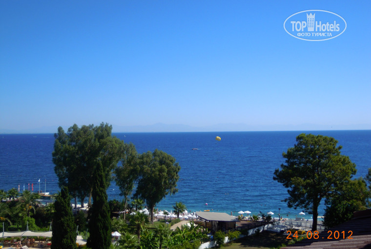 У нас был номер в левом крыле на 4-ом этаже с окнами на сторону противоположную Оранжу. То что называется Sea side view. В принципе, именно в эту сторону вид очень понравился, вот это фото: TopHotels сделано с балокна, справа - море, слева - горы. Просто не повезло с самим номером. Точный номер не помню, 4-й этаж, почти в конце коридора.