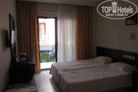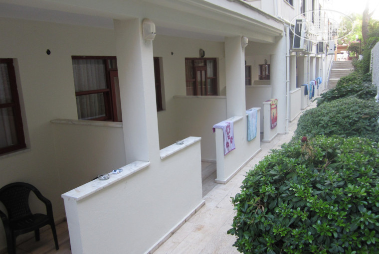 Номера со 101 по 109 находятся на уровне ресторана, то есть на первом этаже. Номер 101 очень близко к дороге (шумновато), а номера 108 и 109 рядом с кухней (запах еды и табака курящих официантов + круглосуточная болтовня турецкого персонала). Номера со 110 по 119 находятся на цокольном этаже (под рестораном, с правой стороны от центрального входа (смотри на фотке)). В самом номере все хорошо, все работает, но реально СЫРОВАТО. От этой сырости белье влажное, одежда нигде не сохнет, а то, что висит в шкафу, тоже делается влажным + насморк и чихание вам обеспечены. Вида из окна нет, так как, выходя из номера, перед вами будет стена соседнего отеля. На втором и на третьем этаже находятся 6 номеров с видом на море. Это хорошо, НО! Под этими номерами находится бассейн и ресторан, поэтому все писки-визги слышны целый день и до глубокой ночи. В итоге самые нормальные номера находятся на втором и третьем этажах, так как там есть балконы и на солнышке все сохнет (надо взять с собой веревку метров 5, натяните на балконе для сушки вещей), там потише и вид из номера на соседние отели, которые ничем не напрягают. Шум от кондиционеров и электрогенератора слышен везде, но так во всех отелях и к нему за 2-3 дня все привыкают. Сейф стоит 2 $ в сутки, но это лишние растраты. Если чемодан на кодовом замке или на сумку можно приделать замочек, то все будет в сохранности. И еще надо продумать, куда вы будете складывать все эти ключики от замочков, от номера и фотик. На пляже сейфов нет. Я ремешок от сумочки привязывала к лежаку и накрывала все это полотенцем.