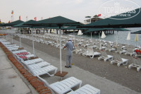 Море разное, день на день не приходится: то чистое и спокойное, то волны и мусор приплывает. Лежаки удобные и лежать можно и без матрасиков на льняном полотенце (пляжные полотенца в отеле не выдаются, а белые из номера на пляж выносить нельзя), купленном за 1 доллар на рынке напротив отеля (фотка с кошкой и полотенцами). Опытные люди именно так и делают, а неопытные везут с собой на всю семью махровые полотенца, тогда как их надо везти не туда, а оттуда: большое махровое полотенце стоит от 5 до 8 $. От корпуса до моря 3 минуты ленивой ходьбы. Пляж вечером чистят (см. фотку) и четкой границы между пляжами отелей Сидней и СиаГул нет, поэтому вся эта толпа перемешивается и не поймешь кто откуда пришел, но места всем хватает. Горки в отеле нет, но если очень-очень хочется покататься, то надо по береговой линии пойти в отель за белокаменным Империалом и там 2 горки (прямая и в один оборот; желтую горку видно с моря, так что сориентируетесь). Они работают по графику: с 10.00 до 12.00 и с 15.00 до 17.00. Я ходила раз 5 потихонечку и никто не остановил. Вообще, в Бельдиби-3 во все отели по береговой линии можно зайти без проблем, а вот в Бельдиби-2 такой номер не прокатит. Я обошла 10 отелей, всё сравнила и пришла к выводу, что такую трешку как Сидней еще поискать надо!!! Если вам захотелось погулять, то за воротами отеля навалом магазинчиков (см. фотку) с сувенирами, футболками, пляжными шлепками, туниками, полотенцами, сумками, фруктами и прочей хренью. На этот вечерний променад все выползают после ужина и гуляют часов до 11 вечера. Анимация во всех отелях слабая, дискотеки вялые (дети и бабушки), но иногда приезжают артисты в Империал, вот туда-то можно пойти для разнообразия. В 21.30 уже темно, поэтому зайти и потом уйти вообще не проблема. А еще через день салюты офигенные бывали. Их устраивают вип-отели: Риксос и еще какой-то вдалеке отель.