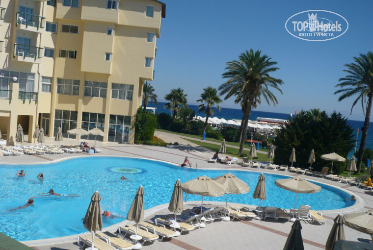 У бассейна рядом с баром места на лежаках надо было занимать с утра. Но мы всего пару раз там купались, т.к. ехали за морем)