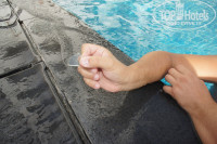Еще одним сюрпризом стало постоянное отсутствие пляжных полотенец! Чтобы взять полотенце на пляж, нужно успеть за ним сгонять на лобби до 9.00! Около бассейнов пункты выдачи полотенец работали в зависимости от настроения персонала, который ходил насупленный и мрачный (я понимаю, в отеле в основном русские, но это их работа - улыбаться и выполнять свои обязанности!). В бассейне на 5 этаже мы нашли огромное острое стекло (фото также прикрепляю) - работники просто пожали плечами и предложили его выкинуть - бассейн в этот день никто не чистил, впрочем за 10 дней я только 1 раз видела как что-то вылавливали из него (спать мы ложились очень поздно и вставили обычно к 7-8 утра).