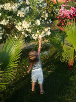 Территория отеля очень большая и цветущая, восхищаюсь ей до сих пор. Коляску можно взять напрокат, по территории курсирует мини-паровозик) Но он вроде только вещи развозит при заселении.
