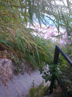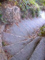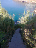 Пляж-понтон. Спускаться до него примерно 120 ступенек. Перила ржавые на спуске в море с понтона. Зонтов к лежакам не хватает.
