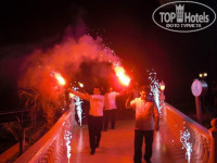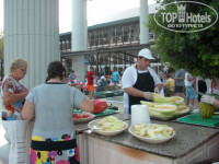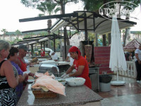 Наши приключения начались в Москве, когда наш туроператор скинул смс насчет задержки рейса с компанией Норд Винд(недаром Северный ветер) ветрило нас в аэропорту Шереметьево 5 часов, за это время нам дали по бутылочке воды и сказали... ждите. Ну слава богу вылетели вместо 12.00 в 18.05. Прилетели с упавшим настроением, усталые и злые. Встретили нас в аэропорту Анталии гиды из Пегас Туристик , посадили в автобус. Очень быстро доехали в отель. В этом отеле мы второй раз, первый был в 2011 очень понравилось. И на этот раз отель нас не разочаровал. на рецепшен перед нами извинились. Сказав что у них нет хорошего номера, поместили нас временно на одну ночь в первый корпус. Номер щикарный, уютное место, сосны справа, слева море, но через забор отель Ако Алинда.и оттуда до 3 ночи орет музыка, идет дискотека. Утром нам дали 4 корпус комнату 4312, в прошлом году была 4314. Комната светлая, на теневой стороне, очень важно, солнце не бьет тебе в глаза. Потому что очень жарко на солнечной стороне. Отель сделал огромный ремонт. Поменяли все. Сантехнику, мебель, постельное белье, раньше было белое, сейчас кремовое. Хорошие ортопедические матрасы, плазменный телевизор, бар(бесплатный) напитков хоть залейся, и каждый день пополнялся.Уборка номера, смена полотенец каждый день, в ванной мочалка, два халата, двое тапочек, ну и по списку мыло, шампунь, кондиционер, шапочка резиновая. Сейф платный 3 доллара сутки. Утром пошли на завтрак. Меню, шведский стол, два вида каш манка и рисовая молочная, куры гриль, крылья, бедра,баранина, индейка жарят прямо при тебе, лазанья с сыром и мясом. картофель фри, рис отварной с изюмом, с бобами, еще с какой то приправой, салатов 12 видов насчитала, йогуртов 9 видов, там же в плошках мед, варенье грушевое, клубничное, сливовое, вишневое и абрикосовое,и каждый день разные, было и из нектарин, айвовое, инжировое. Далее сдоба, это отдельный разговор, на улице при тебе пекут хачапури и булочки с тмином. В закрытом ресторане, а их там несколько, круасаны несколько видов прямо горячие, булок пироженных, и тортов не счесть. На улице режут при тебе арбузы и дыни, в ресторане персики, нектарины, груши, яблоки, апельсины, сливы. И еще отдельно стоит диетический стол. Где все приготовленное на пару. Хлеба видов 19 еще лаваш готовят на улице в печке очень вкусный надо сказать лавашик. Все поели отправляемся на море, от главного ресторана идет дорожка метров 100 и море. А по пути слева детский бассейн с маленькими горками, с пеленальной комнатой, удобными шезлонгами. Справа большой бассейн, он сделан каскадом. По этой же дорожке слева стоит домик, где по карточкам получаешь полотенце. Меняй хоть 5 раз в день. Дорожка оканчивается на пирсе а слева и справа шезлонги под тентами, то есть хочешь загорай под тентом, лучи преломляются, сгореть не сгоришь а загоришь хорошо. А некоторые любители лежаки ставили прямо в воду и так загорали. Еще есть такие мягкие подушки на них тоже хорошо загорать. Вход в море и с пирса, и с берега, мелкая галька. Ну вот поплавали легли на лежак и в 10.00по главной дорожке на пирс пришли анниматоры. у них ритуал, каждый день они выстраиваются в 10.00 на этой дорожке и всему пляжу кричат: доброе утро, доброго ранку и т.д. Затем идет гимнастика в море. Анниматор Марина собирает человек 100, объявляя6- ну что звезды позвездим. И час в море звездит гимнастика. Раздает бана