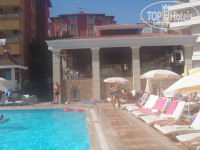 Территория отеле: крайне небольшая (что можно вполне счесть плюсом, т.к. идти от номера до бассейна или ресторана не больше минуты), но ухоженная, все в зелени, чисто. Лежаки у бассейна бесплатные, но так уж повелось, что их все занимают в 6-7 утра полотенцами, первые дни мы пытались быть порядочными туристами, но на третий день сдались и сами начали кидать полотенца:)) До моря идти порядка 3 минут (что удобно), лежаки платные, но обходились без них. Пляж в принципе неплохой (песок с мелкими камнями), заход в море тоже вполне. Однако где-то через метров 70 имеются подводные камни, о которые можно спокойно пораниться, с другой стороны возле них образуются очень неплохие волны, при наличии матрасы можно их половить:)) Из-за волн море мутноватое, также иногда приносит всякие веточки и водоросли.