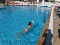 Я поехала отдыхать в этот отель с 02.09. по 11.09 с молодым человеком и друзьями (семейная пара). На след. день, после приезда, вечером, мы сидели за столиком рядом с амфитеатром, пили свой алкоголь и наслаждались первым полноценным днем отдыха. Около 12 часов ночи мы увидели драку на баре. Причем, наверное, вначале состоящая человек из 5-ти, эта драка затрагивала соседние столики, и в итоге в ней участвовало очень много человек. Били друг друга не только кулаками, но и стульями , пепельницами, бокалами стеклянными! Было очень страшно даже смотреть! Как только драка началась, мы встали из -за стола, через несколько секунд мне в руку попал осколок от бокала, было много крови, и мы пошли на рецепшн за помощью. Не помню сколько ждали врачей, около 10 минут, пришли 2 врача, и нас повели по тропе к мед.пункту. Навстречу нам шли 2 турка, официанта, один с перемотанной головой. Они когда увидели моего молодого человека, озверели!! Они накинулись на него, а наш друг начал защищать его. Через несколько секунд набежало еще человек 15 турков. Причем, один из них, говорил по-русски, пытался нам помочь, сказал: "Говорите, я буду переводить им". Мы начали объяснять, что никакого отношения к драке мы не имеем, про осколок и т.д. Но, кто-то из толпы накинулся на моего м.ч. и все!! мало что помню. Крики с просьбой о помощи, безумный ор вызвать полицию - но, 7 туркам это не мешало избивать лежащего человека ногами!! Причем не один раз наши мальчики падали на землю, и их ногами било несколько человек!! Там была еще девушка, представитель Пегаса, которая смотрела на все это. ГДЕ БЫЛА ОХРАНА???? Мне тоже интересно. 2 человека из охраны прибежали. Они нас с Лидой отгородили от наших мальчиков, и их опять при охране повалили на землю и избивали!!