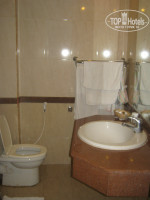 1.пишут что был ремонт в 2010г. - написать написали, а ремонт сделать забыли. В номерах стены обшарпаны, спинки кроватей прибиты к стене намертво, мебель старая. У меня в номере был холодильник, телефон, телевизор, сейф,кондиционер - все работало исправно; ну и туалетная бумага с мыльно-рыльными принадлежностями - само собой... Душ - теплый только днём! Утром и вечером - прохладненький.