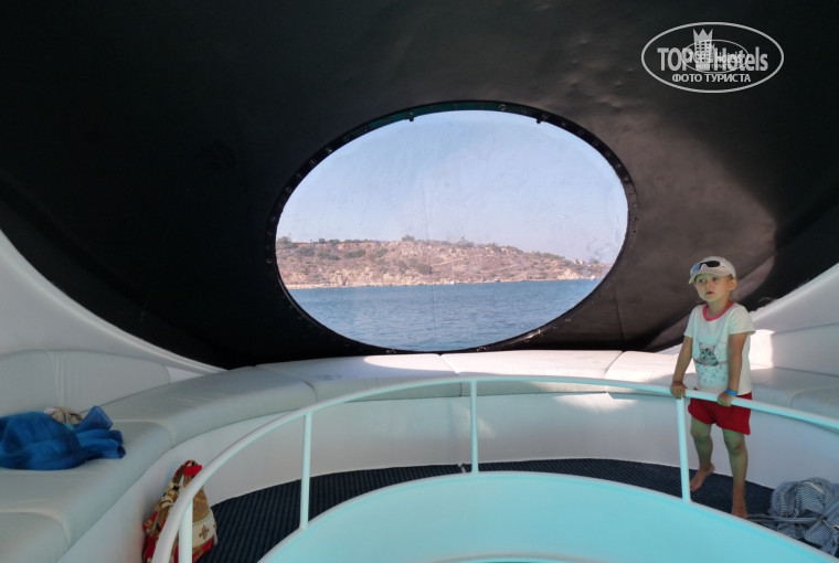 3. Советую купить экскурсию в порту на скоростной лодке Galaxy. Стоимость 40 евро. В нее входит – катание на большой скорости (людей на борту не более 27), ощущения как от американских горок) Кто любит экстрим – может спрыгнуть с 8-ми метровой скалы (остановка входит в программу эускурсии) . У лодки прозрачное дно, можно увидеть черепах. Но море не настолько красивое как Красное, поэтому особых красот не ищите. И еще совет – берите с собой плавательные очки, т.к. от брызг во время быстрого движения могут воспалиться глаза, или прячетесь на нижней палубе. А вообще все круто).