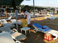 Уборщики на пляже Вашего отеля выливают все напитки, которые оставляют клиенты на пляже после себя, просто на песок, на пляже Вашего отеля постоянно находятся бродячие собаки! Это нарушение экологии и угроза жизни и здоровью клиентов, которые находятся на Вашем пляже. Напитки вылитые Вашими уборщиками на песок на пляже Вашего отеля приводят к образованию на пляже болезнетворных микроорганизмов при высокой летней температуре воздуха, угрожающих здоровью клиентов! Бродячие собаки, которые находятся на пляже Вашего отеля возможно больны бешенством или другими болезнями, несущими угрозу для здоровья и жизни Ваших клиентов!