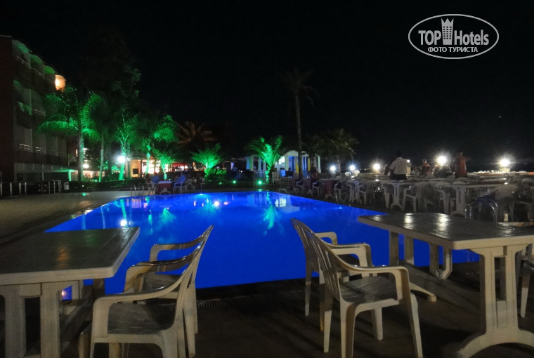6) еда: вполне хорошая, не травились, вкусно, разнообразие есть, много зелени, специй, овощи всегда есть, мясо есть всегда, но 1-2 вида, рыба только 1 раз в неделю, и то дали костлявую какую-то. Расстраивает только завтрак, каш нет совсем, горячее видели всего несколько раз, всегда есть только йогурт, вареные яйца, сыр, колбаса, много мюсли и варенья. Сладости есть всегда, но в основном бисквитные тортики с разными кремами и печенье. Лукум 1 вид только на завтрак. Фрукты всегда были на все трапезы Суп и на обед и на ужин. Детского меню НЕТ. Соки с привкусом юпи, хотя вроде пакетированные, но в стране точно есть соки лучшего качества. Повторы блюд были, если что осталось с ужина, утром получить можно тоже самое, но под другим "соусом". Но ведь и дома не все готовят каждый день новое? Показательно, что сам обслуживающий персонал (управляющее звено), включая повара, ел вместе с отдыхающими. Ужин накрывают вокруг бассейна на улице, что приятно.