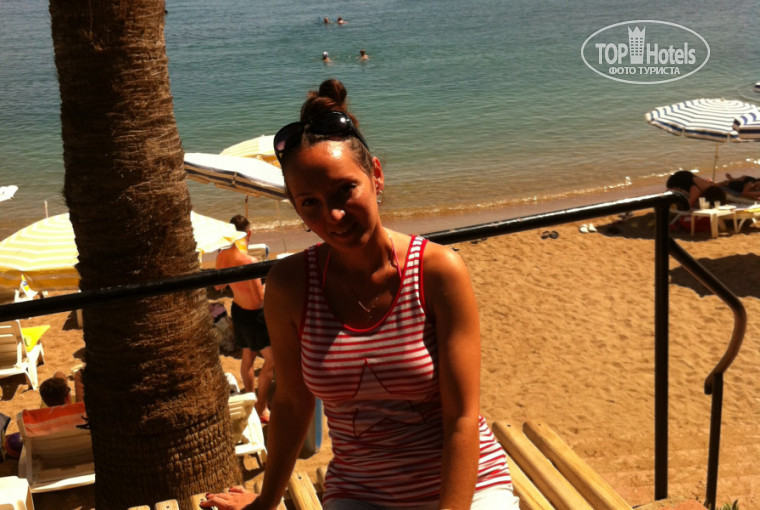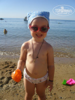 4. Пляж - мы размещались всегда с левой стороны пляжа, там нет камней в море, как с правой стороны. Приходилось утром идти перед завтраком на пляж расставить шезлонги, принести самой матрасы и установить зонт. Неужели нельзя все это закрепить, намного бы облегчили отдых туристам!!! Море очень теплое, спокойное, так как это бухта, идеально для деток плескаться и плавать в нём!!! В первой половине дня очень чистое море, во второй уже грязновато.